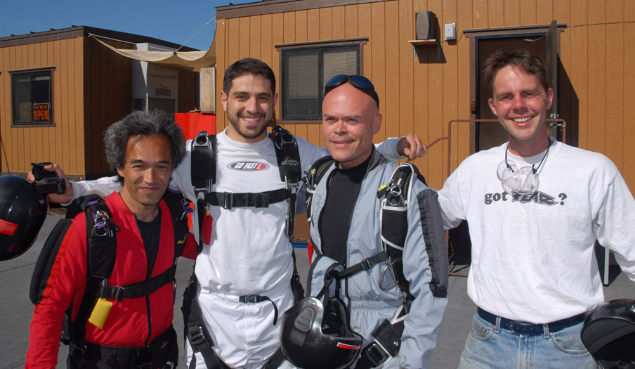 just happy to be on the next load high uppers can get you way out ... this guy just had to chop ken, ibrahim, me & nate giving patrick a final gear-check